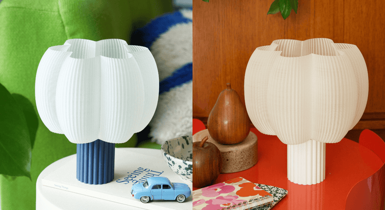 Dès 2024, Perrine veut étendre l’offre "design et responsable" de Bleuu Studio au-delà des tapis. Grande amoureuse des luminaires, elle découvre la fabrication en impression 3D qui allie grande créativité design et fabrication locale et responsable. Après 12 mois de tests et de recherche, la gamme de lampes à poser est enfin lancée !
