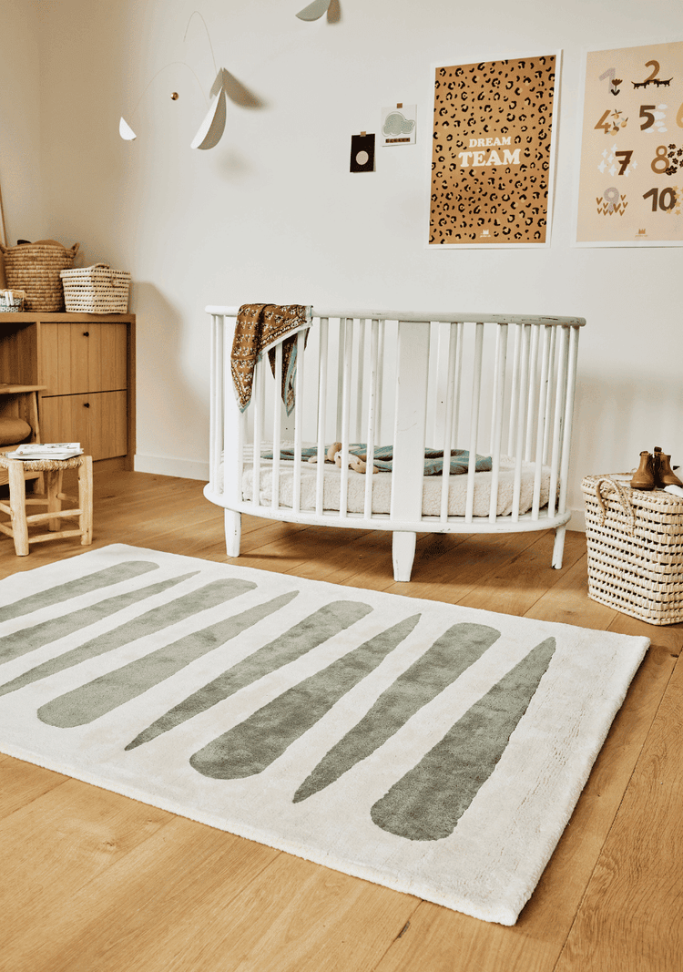 Nos tapis maison sont tuftés à la main avec des matériaux sains. Ils sont fabriqués avec du coton bio certifié GOTS. Ce label requiert un minimum de 70% de fibres biologiques, mais nous avons fait le choix d'être à 100% de coton bio. Le dessous de nos tapis maison est également en coton. Contrairement au coton conventionnel, le coton bio utilise des engrais naturels et sans OGM, il est cultivé sans pesticides ni insecticides et consomme 91% moins d'eau que du coton conventionnel.