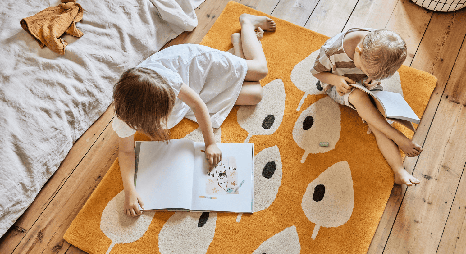 Les enfants passent beaucoup de temps au sol dans leur chambre.