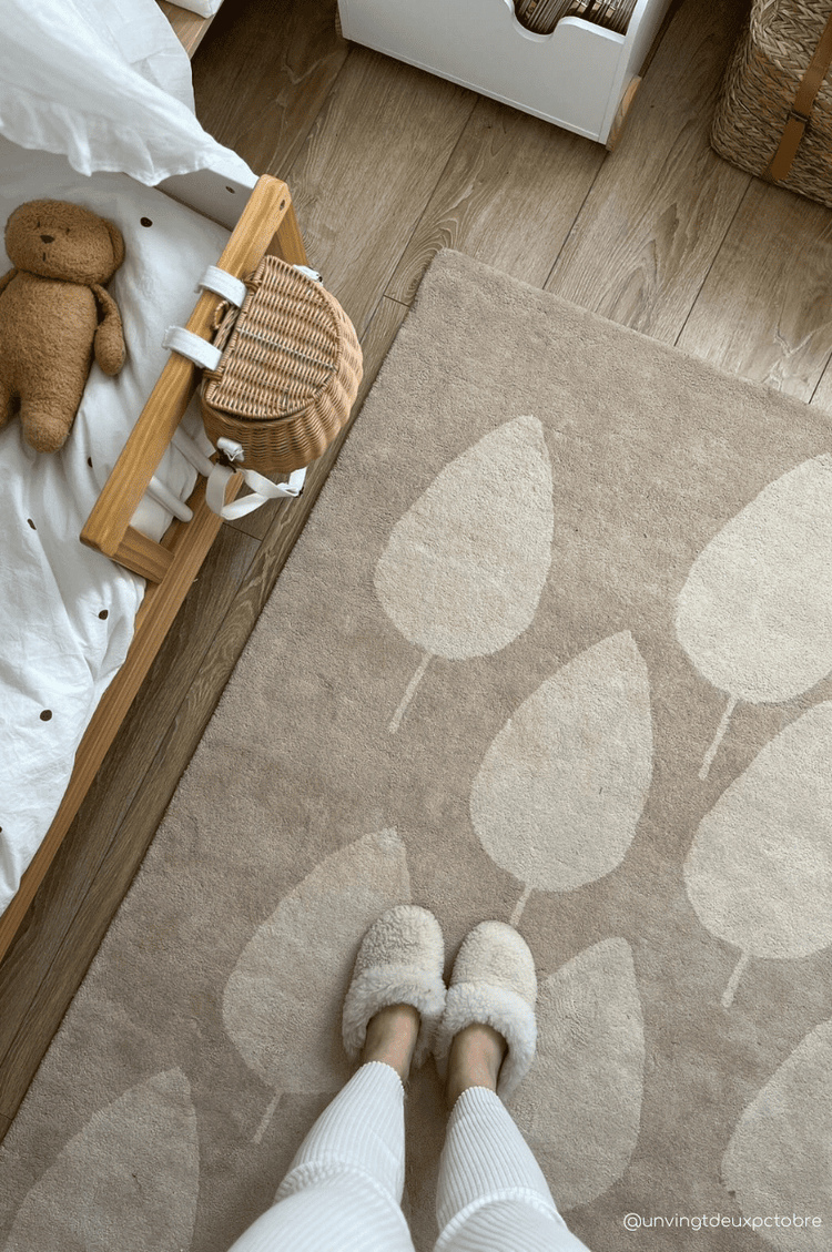 Nous avons choisi une épaisseur de tapis hygiénique, d'un peu moins d'1 cm, pour apporter du confort mais aussi limiter l'emprisonnement de la poussière. Nos tapis assurent ainsi un environnement sain et sécurisé pour les chambres de bébé et les chambres de vos enfants !