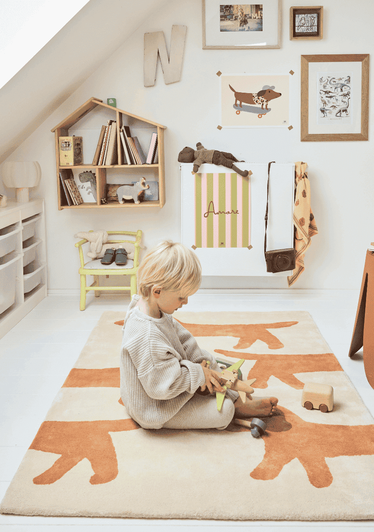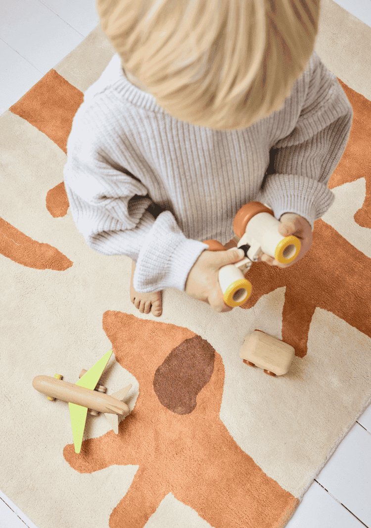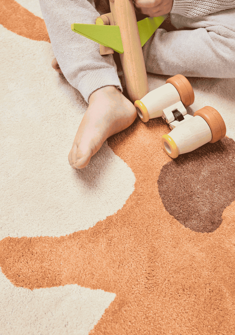 Nos tapis maison sont tuftés à la main avec des matériaux sains. Ils sont fabriqués avec du coton bio certifié GOTS. Ce label requiert un minimum de 70% de fibres biologiques, mais nous avons fait le choix d'être à 100% de coton bio. Le dessous de nos tapis maison est également en coton. Contrairement au coton conventionnel, le coton bio utilise des engrais naturels et sans OGM, il est cultivé sans pesticides ni insecticides et consomme 91% moins d'eau que du coton conventionnel.