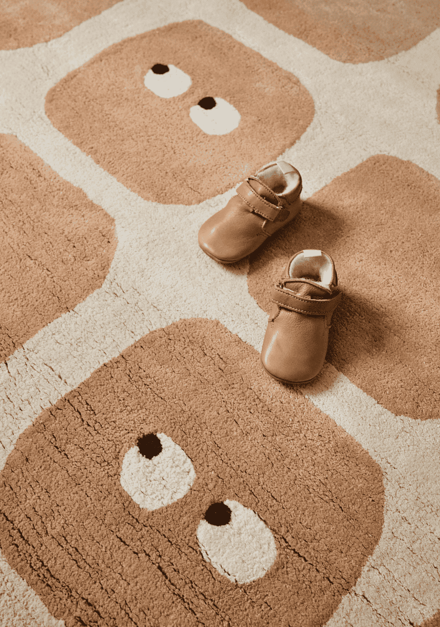Nos tapis maison sont tuftés à la main avec des matériaux sains. Ils sont fabriqués avec du coton bio certifié GOTS. Ce label requiert un minimum de 70% de fibres biologiques, mais nous avons fait le choix d'être à 100% de coton bio. Le dessous de nos tapis maison est également en coton. Contrairement au coton conventionnel, le coton bio utilise des engrais naturels et sans OGM, il est cultivé sans pesticides ni insecticides et consomme 91% moins d'eau que du coton conventionnel.